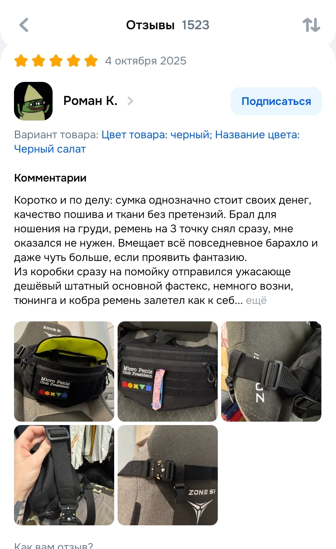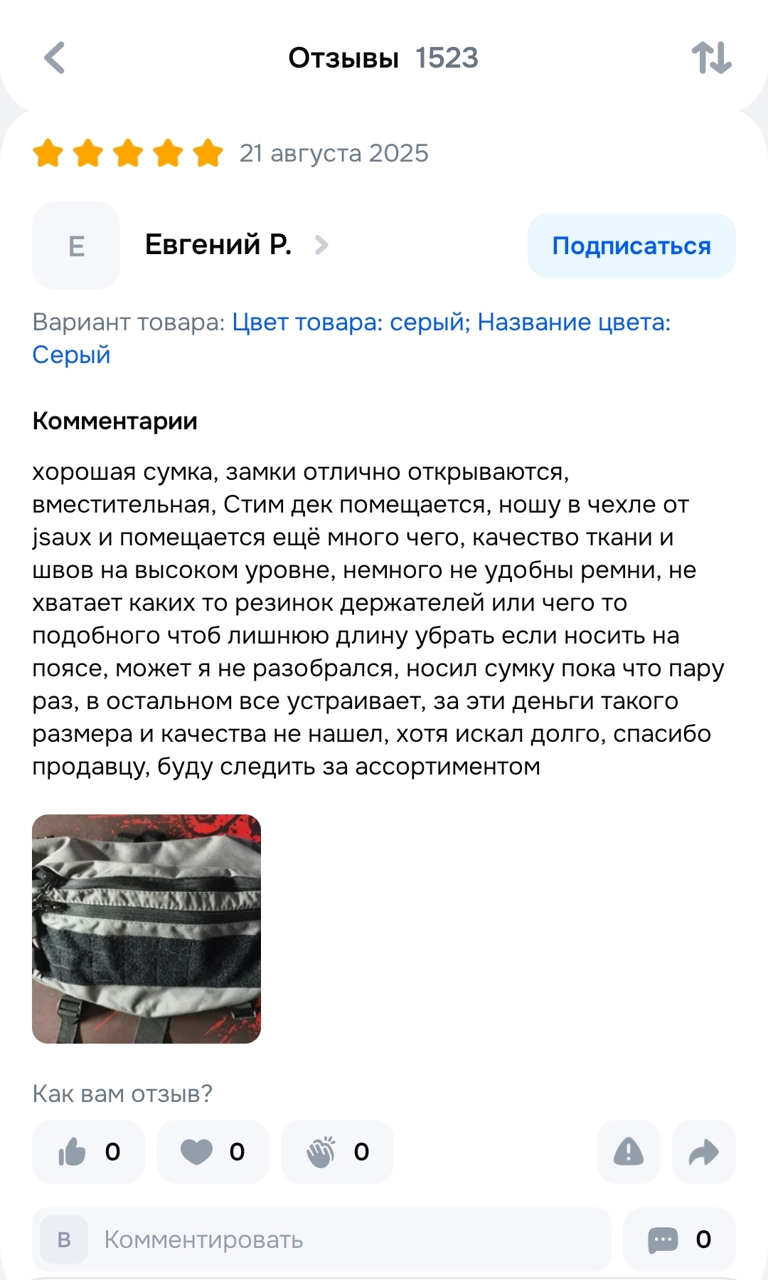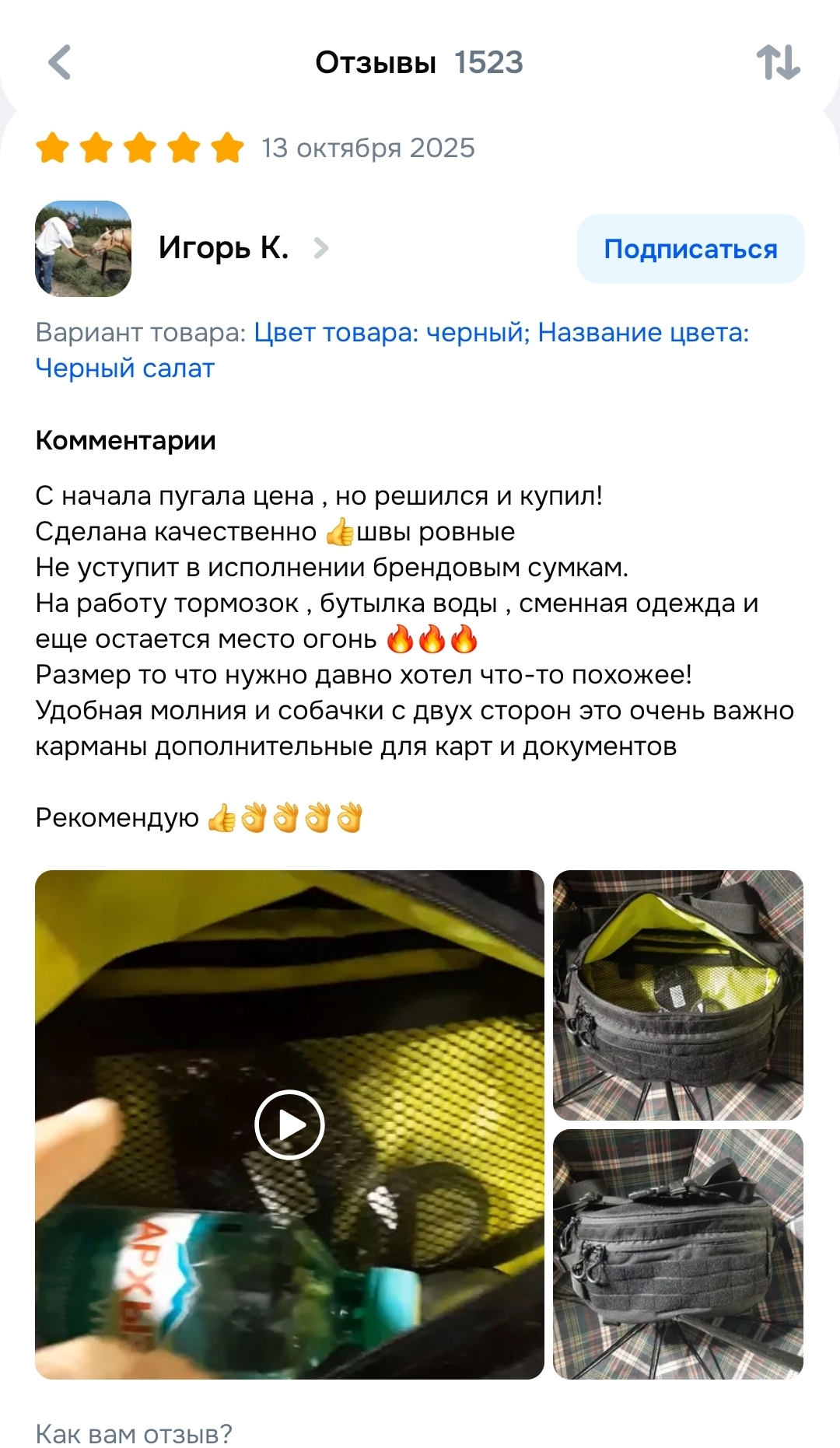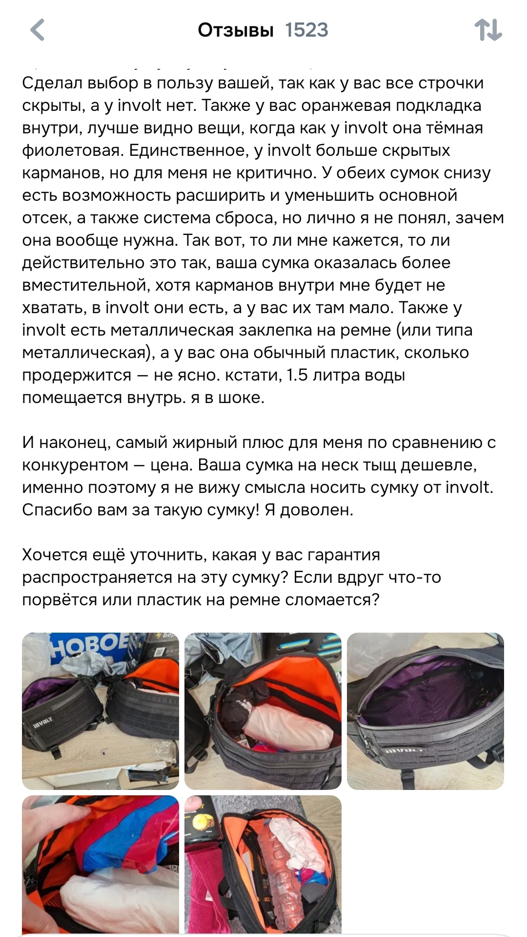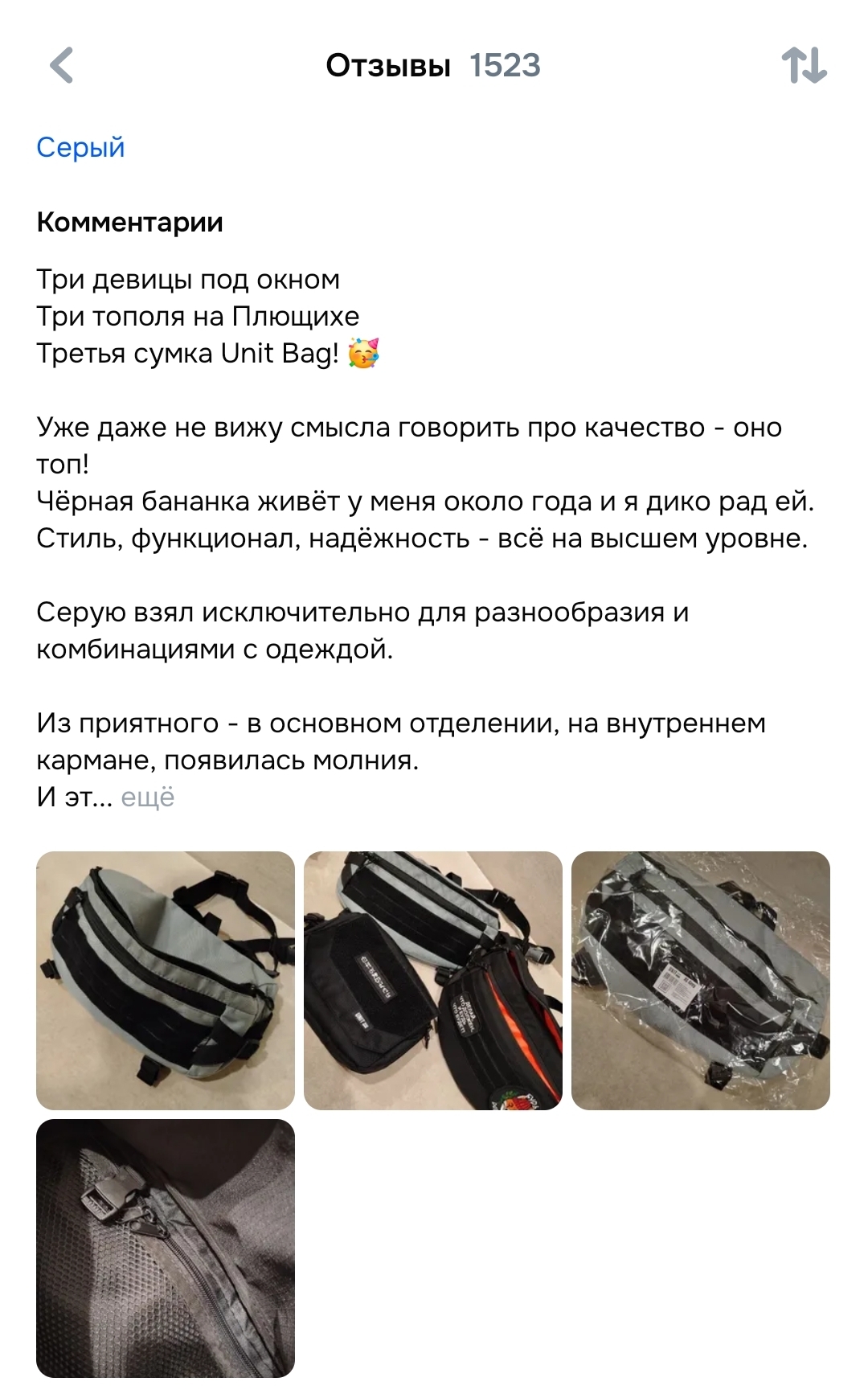 Когда-то сумки для нас были простым хобби. Мы делали их для себя и для друзей. Все советовали нам заняться этим делом профессионально. Мы долго сопротивлялись т.к. сильно скромные =). За пару лет торговли на маркетплейсе мы получили тысячи отзывов и огромную обратную связь. Наш канал и чат в телеграм, где мы плотно общаемся со всеми желающими, дал нам последний пинок, и мы решили пойти дальше. Вас ждет много интересных новинок. Мы будем много общаться с вами напрямую лично в нашей тележке, поэтому присоединяйтесь к нам в семью. Будет интересно.